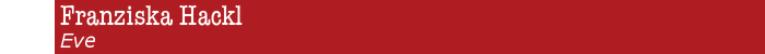 Die 1983 geborene Wienerin Franziska Hackl absolvierte ihre Schauspielausbildung am Max Reinhardt Seminar Wien. Nach ihrem Abschluss 2006 war sie zwei Jahre lang fixes Ensemblemitglied am Staatstheater Mainz, wo sie ihr Können unter anderem in klassischen Rollen bewies. 2007 nominierte sie die renommierte Zeitschrift Theater heute als beste Nachwuchsschauspielerin. Den beiden Jahren in Mainz folgten Engagements in Hamburg, Berlin und Wien - besonders zu erwähnen wäre hier, ihre Rolle als Flora in "Grillenparz" am Schauspielhaus Wien - unter der Regie der österreichischen Jung-Regisseurin Nora Schlocker. Für diese Rolle erhielt Franziska Hackl 2011 den Nestroy als beste Nachwuchsschauspielerin.