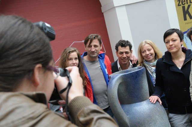 Im Blitzlichtgewitter: Franziska Hackl, Andreas Patton, Intendant Gregor Bloéb, Elfriede Schüsseleder, Regisseurin Susi Weber