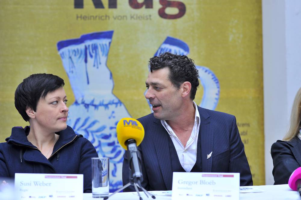 Die Vorbereitungen für den nö. "Theatersommer Haag" (Bez. Amstetten) laufen auf Hochtouren. Auf dem Hauptplatz wurde bereits mit dem Aufbau der Tribüne begonnen, ab 14. Juni wird in Wien geprobt, am 27. Juni ist um 20.30 Uhr Premiere. Bis 4. August folgen 19 Vorstellungen. Im Pfarrhof von Stadt Haag informierte Intendant Gregor Bloéb nun über sein Team für Heinrich von Kleists klassisches Lustspiel „Der zerbrochne Krug“, bei dessen Zusammenstellung ihm „jeder Wunsch in Erfüllung“ gegangen sei. „Mit Susi Weber konnte ich eine sehr kreative und bestens etablierte Regisseurin gewinnen“, freut sich der Tiroler über das Engagement einer Tiroler Landsfrau. Weber, derzeit durch eine gebrochene Rippe gehandicapt, inszenierte schon bei den Tiroler Volksschauspielen, am Tiroler und am Münchner Volkstheater, in Bayern arbeitete sie mit Schauspielstar Ruth Drexel zusammen. „Sie hat ein tolles Konzept für den öffentlichen Schauprozess am Haager Stadtplatz entwickelt“, schwärmt Bloéb. Als Dorfrichter Adam urteilt in Haag der „Tatort“-bekannte deutsche Mime Andreas Patton, mit Franziska Hackl (Eve) steht noch eine zweite „Nestroy“-Preisträgerin auf der Bühne. Der Vorverkauf läuft gut, wenn auch nicht so gut wie im Vorjahr bei Shakespeares „Sommernachtstraum“. Karten (25 €; Kinder: 16 €) gibt es unter Tel. 07434/ 44 600. Im Rahmenprogramm treten u. a. die Kabarettisten Alfred Dorfer (15. Juli, 11 Uhr), Erwin Steinhauer (22. Juli, 20.30), Thomas Stipsits & Manuel Rubey (29. Juli, 20.30) auf.
