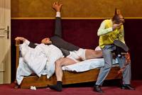 Wer zweifelte, ob Kleist die richtige Wahl war, wird eines Besseren belehrt: Ohne jede unnötige Ehrfurcht vor dem großen Klassiker inszeniert Regisseurin Susi Weber das Lustspiel als Klamauk, baut ungeniert Slapstick-Elemente ein und scheut sich nicht vor Textänderungen, ohne das Original zu verfälschen. Noch bevor das erste Wort gesprochen wird, leert Diener Hans (Stephan Bartunek) in Unterhosen eine Dose Bier und raubt dem schäbig-kargen Gerichtssaal im Sechzigerjahrestil von vornherein jede Ehrwürdigkeit.